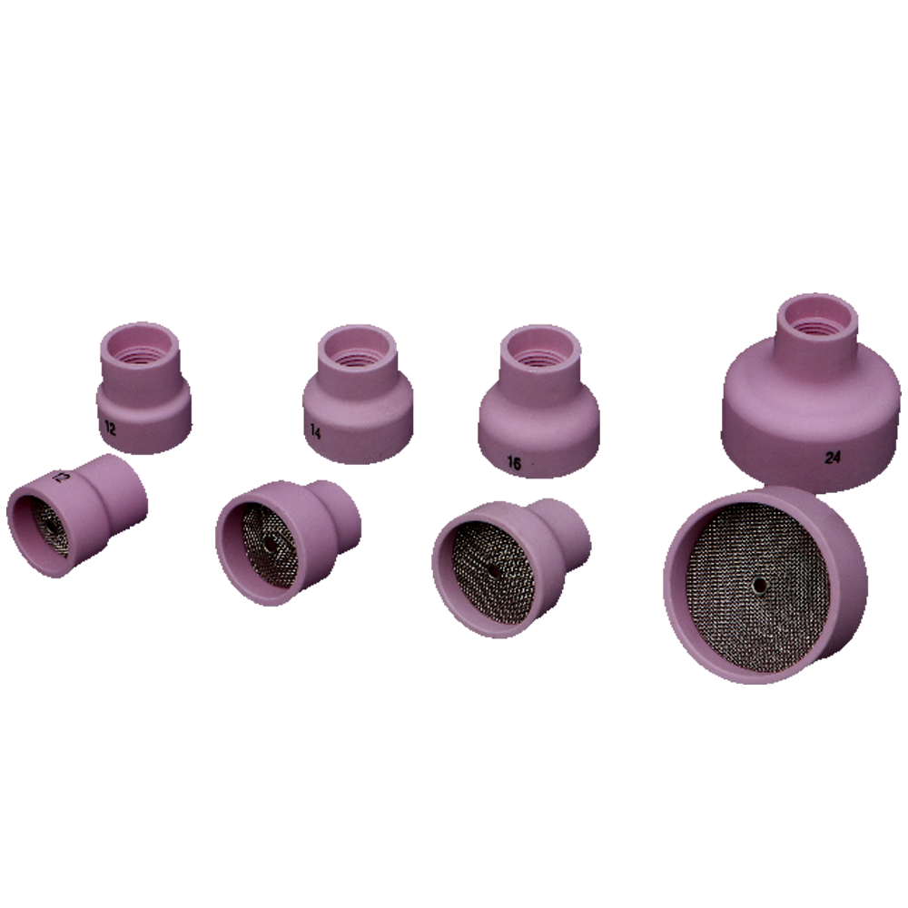 Pyrex gaskopper passer til standard TIG-brændere og kan udskiftes hurtigt, så svejseren kan tilpasse værktøjet til den konkrete opgave. De fås i forskellige størrelser, så gasdækningen kan optimeres efter materialet og samlingen.